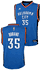 Made for the younger Thunder fan in your family this 100% polyester Kevin Durant Youth NBA Embroidered Swingman Basketball Jersey from Adidas which comes in Blue features an embroidered NBA Logo on the upper left chest, embroidery on the #35 on the front and back center, the team name embroidered on the chest, and his last name on the upper back. Made by Adidas for Thunder Fans