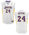 For the younger Lakers fan This 100% nylon Kobe Bryant Youth White NBA replica basketball jersey features an embroidered NBA Logo on the upper left chest, screen printing on the #24 on the front and back center, the team mascot name screen printed on the top center, and his last name screen printed on the upper back.