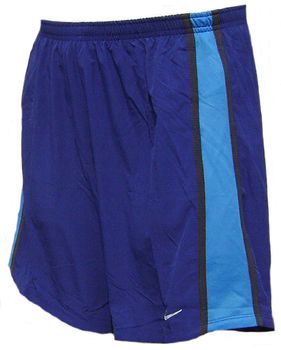 These Men's Running Shorts from Nike blend a perfect mix of Royal Blue stretch woven and mesh fabric in one great Dri-FIT short. Features include a Nike running draw-cord, an internal key pocket and secure zip pocket at the center back. Color Contrasting mesh and light blue contrast binding at the outseam adds color, a Built-in, recycled Dri-FIT liner that extends to the top of the elastic waistband for added comfort. #2 Swoosh design trademark in reflective heat transfer material at lower left hem and Dri-FIT trademark heat transfer at upper right hip. Inseam: 7".