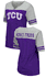 TCU Horned Frogs Juniors Sized V Neck T Shirt- On A Break-Purple