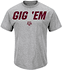With a nice low price this Texas A&M Aggies Gig Em Short Sleeve T Shirt by Section 101 at Majestic comes in steel heather which contrasts nicely with the full-front screened combination Gig 'Em Slogan and school logo. With a regular-fit body that drapes to your body style this 100% 150 gsm. Cotton jersey T Shirt is great to show off you’re an Aggies fan. Made from 100% Cotton